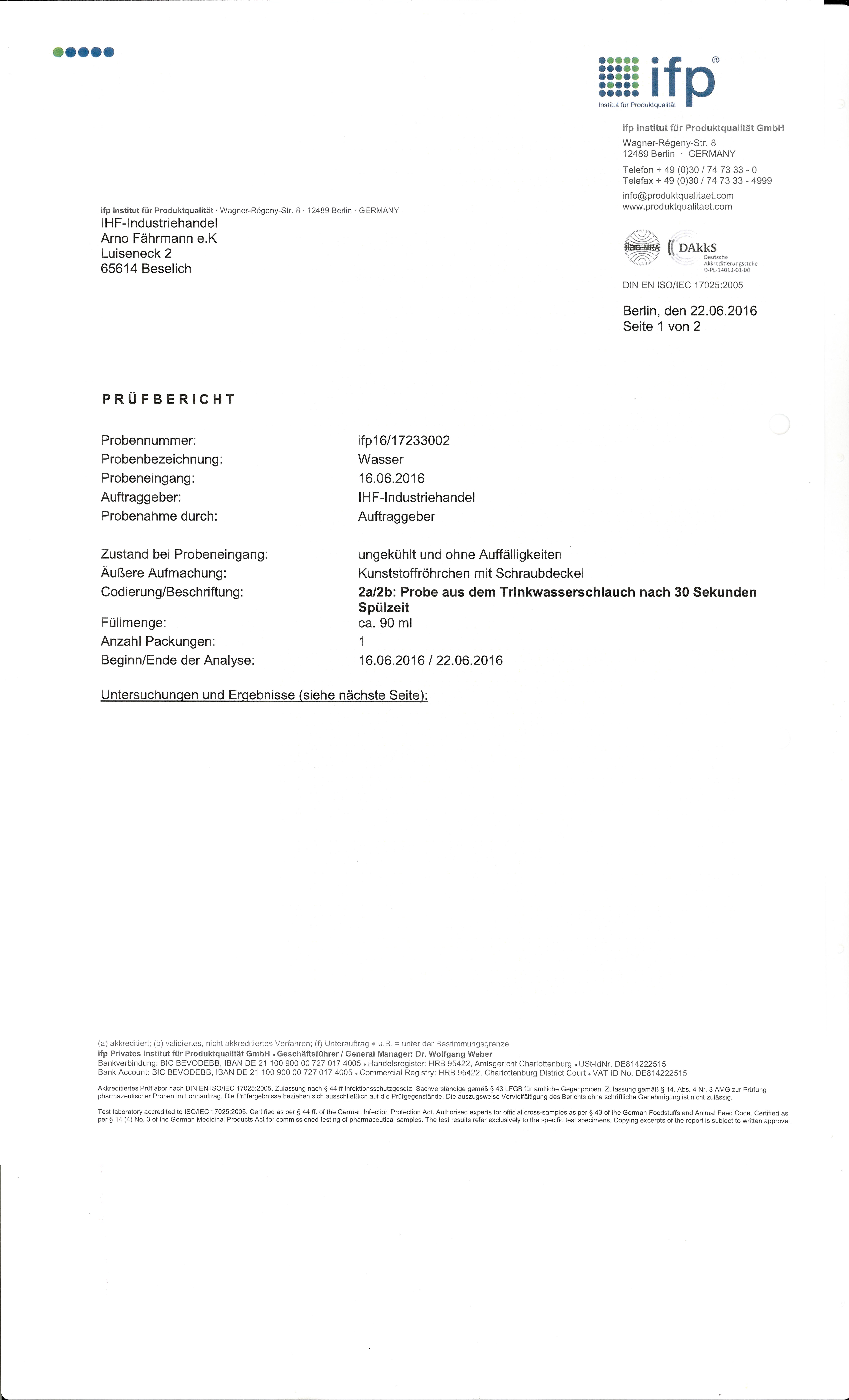 - Die Probenentnahme aus Trinkwasserschläuchen